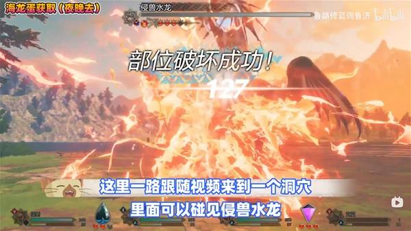 我们只需要它激怒之后,通过火属性技能击破头部就可以让他归巢了,然后就可以拿到海龙蛋了。