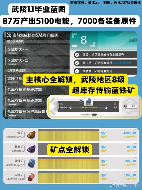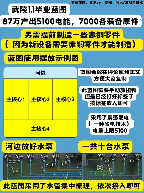 明日方舟终末地1.1版本更新后,武陵的基建解锁了新的阶段,下面请看由"是阿水"带来的明日方舟终末地1.1版本毕业蓝图分享,一起来看看吧。