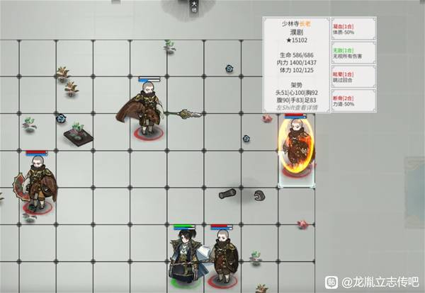 刚用少林测了一遍,6个秃驴围殴,除了后面足势没了掉了100多血,全程都是压着他们打,主要靠降龙+十殿阎罗+排山倒海造内伤、眩晕、断骨debuff,自我感觉还不错。