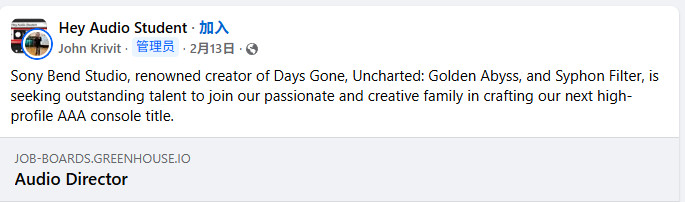 最近网友发现,PlayStation官网发布了"音频总监"职位招聘广告,寻求人才开发一款"备受瞩目的3A级主机游戏"。