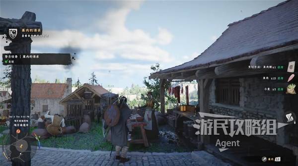 在告示板查看告示,接到势力任务"莱内的请求",然后到肉铺找菜内对话,获得鱼肉粥的烹饪配方。