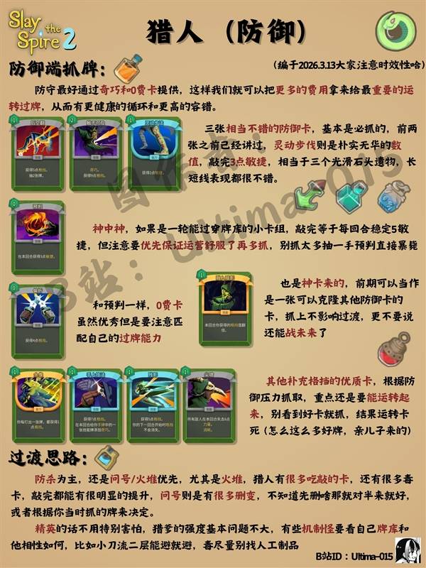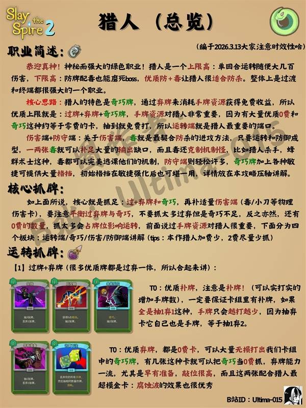 杀戮尖塔2的猎人在初始就解锁了,那么猎人有哪些强力的玩法套路呢?下面请看由"Ultima-015"带来的杀戮尖塔2猎人全体系卡组构筑攻略,希望对大家有用。