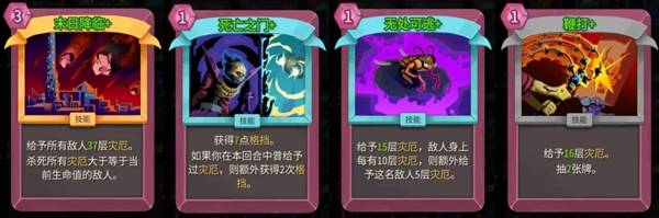 【末日降临+】本身是一张过渡极强的卡,能够瞬时出伤的灾厄,37点群伤足以秒杀绝大多数小怪。到后期还能帮我们解决"明明叠了几百层灾厄但还是硬要吃一刀大的"的问题。