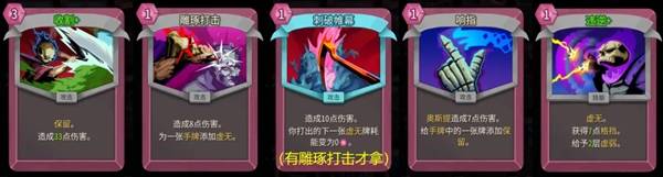 【雕琢打击】本身1费打8不亏战力,能够消耗掉手中多余的弱牌以及怪物给我们塞的状态牌,中后期还能帮我们在单场战斗内精简牌组,一般可以无脑带一张。如果有【刺破帷幕】,那么用【雕琢打击】给【收割】之类的高费牌添加"虚无"特性后就可以0费打出,非常赚。