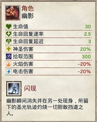 幽影的属性是提升神圣伤害和降低火焰电击伤害,所以推荐玩家带神圣属性的远程武器。