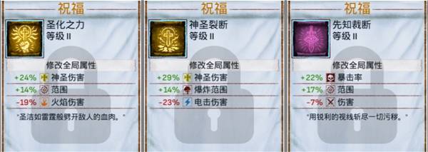 优先神圣伤害属性,其次是暴击率,然后就是生存属性(生命回复,护甲,闪避)和资源属性(运气,资源,经验获取)。