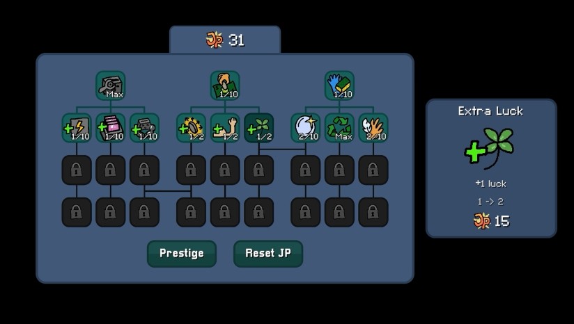 当你准备迎接更多疯狂时,可以选择"转生",重开这一局,收集"大奖点数",并将其投入永久能力升级,打造全新策略流派。打造属于你的幸运引擎:细水长流?瞬间爆炸?还是彻底放飞自我?