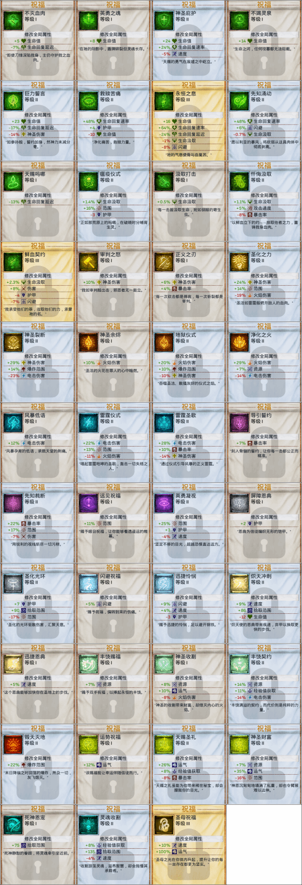 神之军火这款游戏中有很多祝福可以供玩家选择,那么这些祝福的效果如何呢?很多玩家还不太清楚,下面给大家分享的是神之军火祝福图鉴大全,感兴趣的玩家可以一起来看一看。