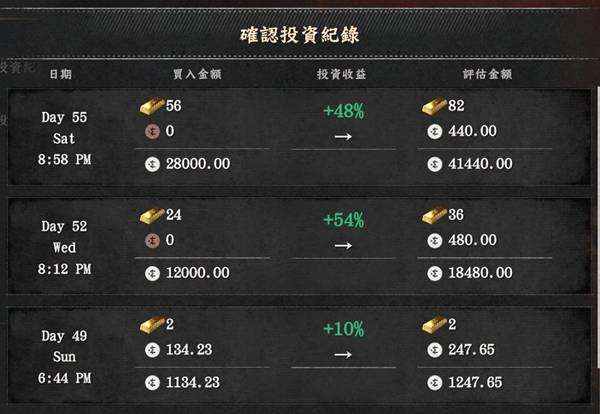 2.抓好银行投资的刷新时间,在刷新前先存入全部金条,并且存档。