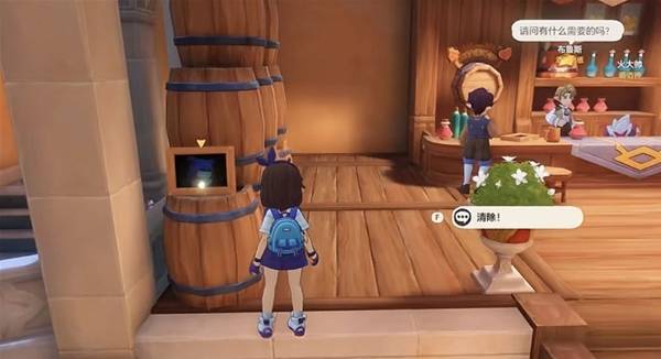 先与老板对话触发清理任务(清理图中的这种相框,总共需要清理四个,就在店里面)