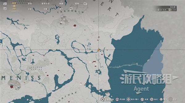 在大地图最东面(德梅尼斯区域东面,黄金甲套装各个部件都在这块附近),下图位置有个瀑布。