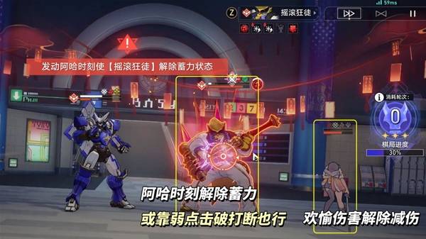 "攻击性阅读物"初始自带高额减伤,可通过欢愉伤害解除。"摇滚狂徒"则是需要阿哈时刻破除蓄力附加易伤,以及添加狂奏效果攻击敌方。