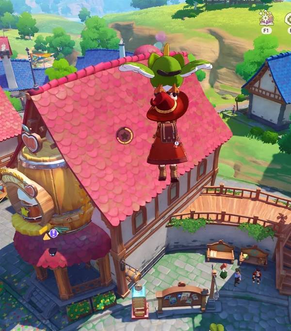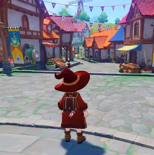 之后回到广场的告示牌那里,直接飞过告示牌背后的房子,会看到摆满可可果的广场,来到中间最高的那一堆可可果那里,最上面的就是可可果之王,那里有个纸条,点击纸条可以得到下一步的线索,让你找竞技场旁边的蓝色高塔。