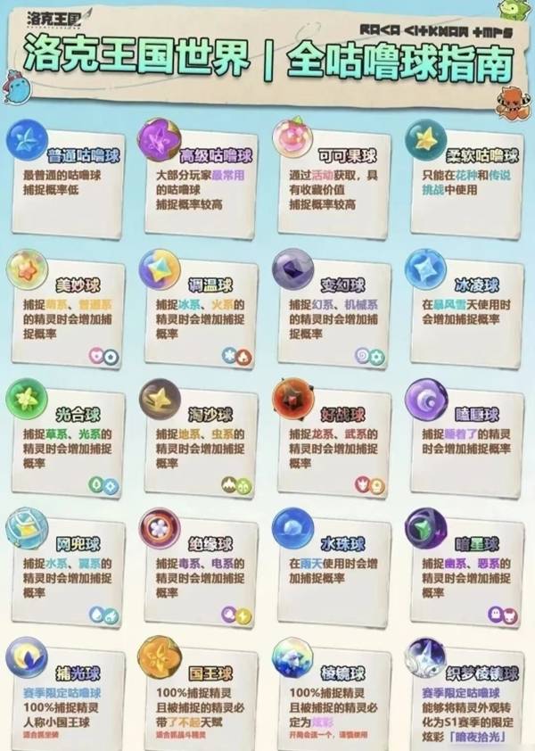 洛克王国世界咕噜球种类非常丰富,而且各自拥有不同的效果,想要知道咕噜球种类的玩家请看下面"凛九千"带来的洛克王国世界咕噜球效果一览,希望能够帮助大家。