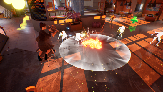 在这款节奏爆炸的动作射击游戏中,骑着办公椅狠狠干翻一切"职场危机"!