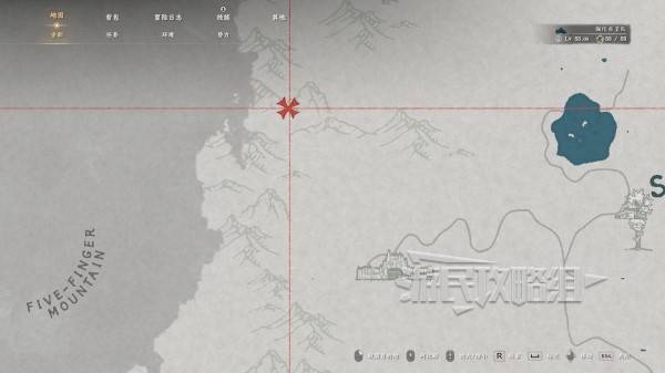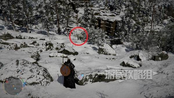 从银狼山(地图上SILVER WOLF MOUNTAIN)的S字母位置往西走,到达五指山。参考下方地图位置,寒霜白熊会在五指山上闲逛,并且带着几只幼仔,击败这只熊,按【□键/X键/键盘E键】获得道具【寒霜白熊利爪】。