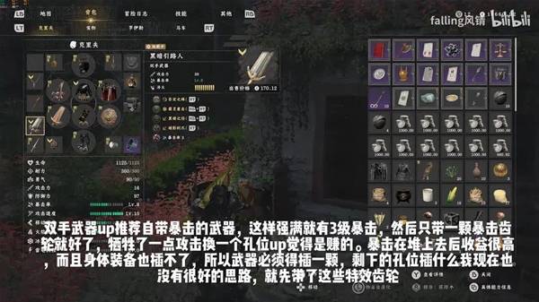 双手武器推荐自带暴击的武器,这样强满就有三级暴击,然后只带一颗暴击齿轮就好了,牺牲了一点攻击换一个孔位,我觉得是赚的,暴击在堆上去后收益很高,而且身体装备也差不了,所以武器必须得插一颗,剩下的孔位插什么我现在也没有很好的思路,就先带了这些特效齿轮。