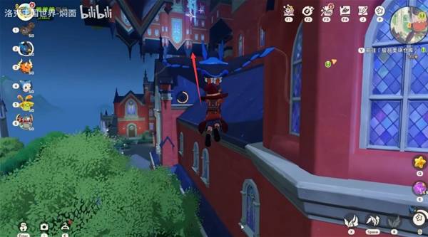 然后继续,中间护路过一只大猫,飞过这栋红房子之后就能看见目的地了。