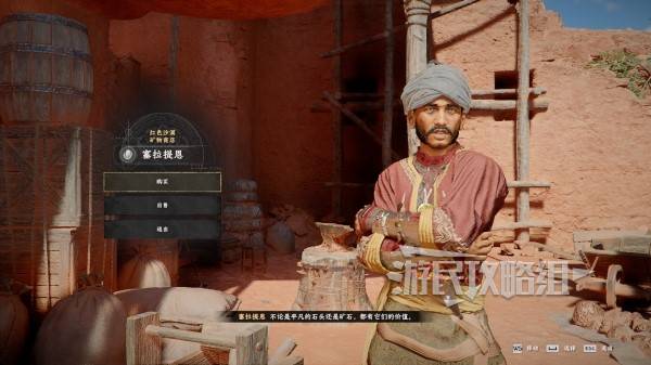 需要在红色沙漠地区的塔舒卡尔普【白骨坑竞技场】中连续击败多名敌人(白骨坑竞技场需要卸掉副武器后与主持人对话参加比赛),解锁塞拉提恩的矿物商店,之后不断打招呼送钱袋提升好感度到100,即可在商店中购买。