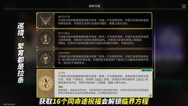 ※有条件可追16祝福解锁「临界方程」,繁育可单体拉条产点,巡猎群体拉条。