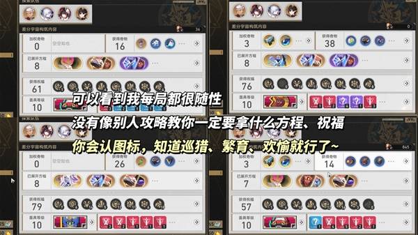 ※倘若运气不好,没有1个符合的方程,那就先随便选一个,等待后续出现"造物调试台"重新刷一下方程,一般出现在首领关卡。期间不要按系统提示,去选取方程所选命途祝福,依旧以巡猎、繁育优先,无方程也能打一定伤害。