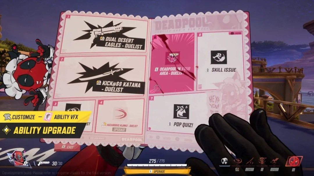 死侍穿上女仆装的这一奇特造型,首次出现在2008年出版的美漫死侍 (2008) #20中,这次则在游戏中进行了还原。这款服装中,死侍的刀将被替换为魔法少女风格的魔法棒。在升级技能时打开的书籍、以及对敌人视线的干扰效果,也都被改造成了可爱的女仆风格。