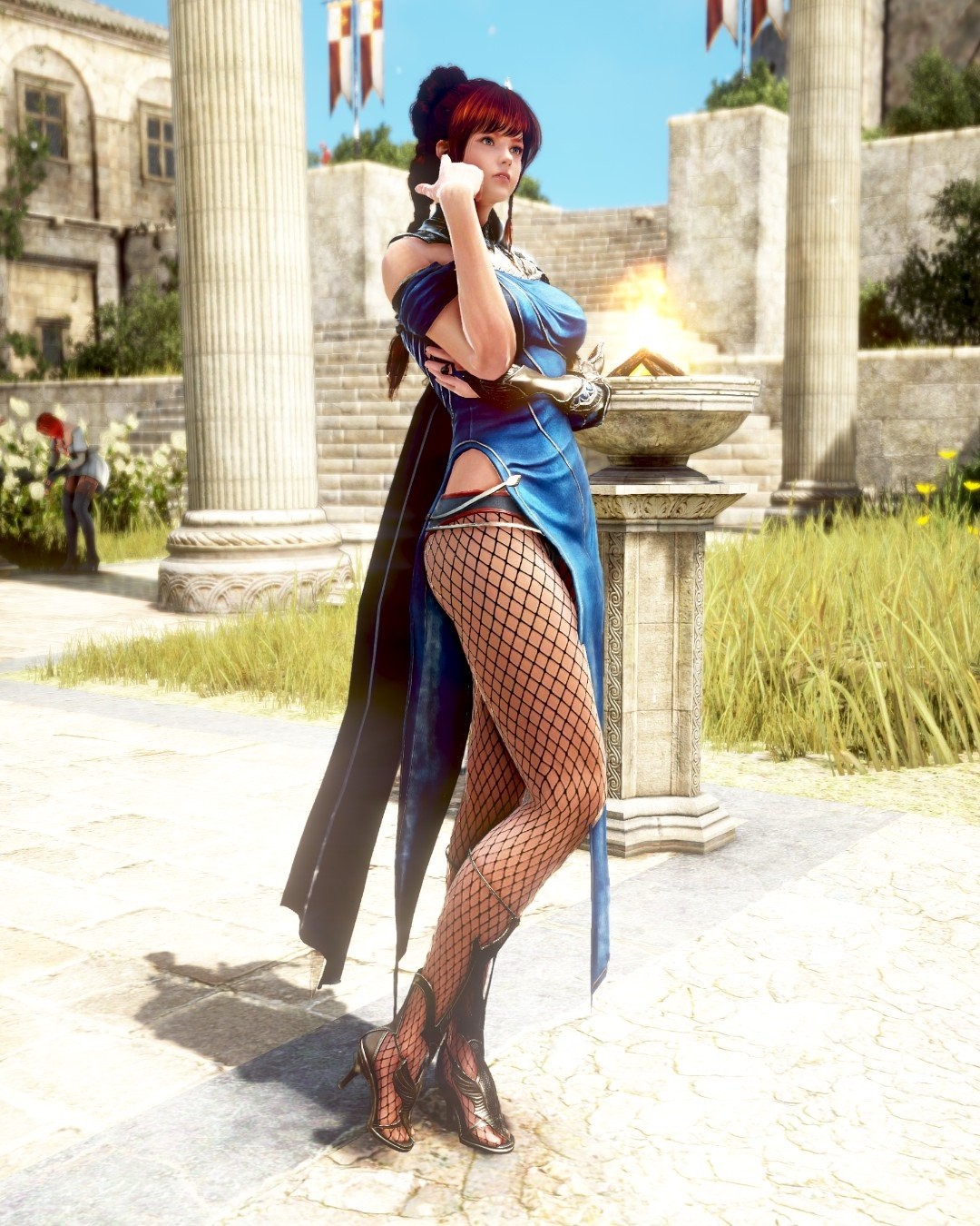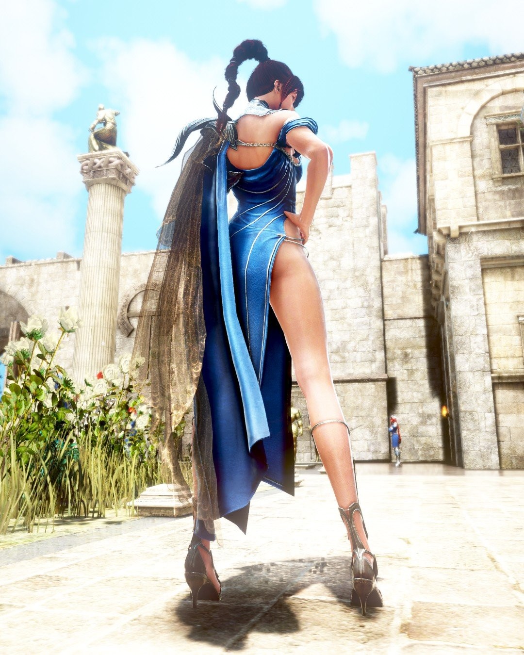 本次新服装,朴素但又完美展示了角色的性感,碧蓝的连衣裙,高叉的裙底,即强调了角色完美的胸部,又展示了修长的美腿,令人欲罢不能。该服装适用于游戏中的女角色职业,包括女武神、女忍者、黑暗骑士、女斗神、兰、守护者。