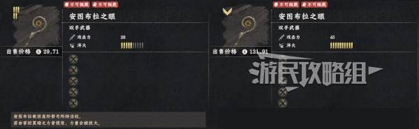 进入洞口,沿着唯一的路前进,同时注意左手边的岩壁下方,直到路稍微变宽,左手边看到两具靠在墙边的骸骨,在骸骨旁边就能找到插在地上的安图布拉之眼。注意此时见到建议立刻拾取,否则可能会遇到武器消失的BUG。