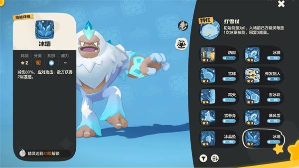 雪巨人,适合用来兜底,技能选择冰晶坠+冰墙+霜天+先发制人