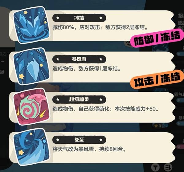 天气手虽然种族值低,但是速度很快,难以开启的天气能够更早开启。技能配置推荐顶端优势+暴风雪+冬至冰捆缚