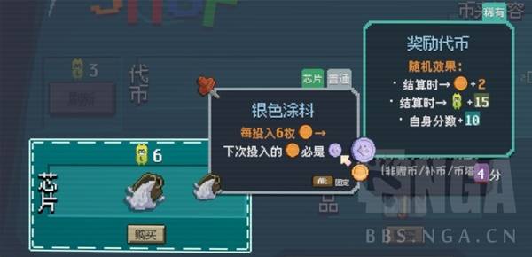 去除坏币会获得[挂件]--包含礼品槽位+1、芯片槽位+1、币夹改装次数+1等强力效果,一局游戏最多获得4次[挂件机会](15回合也有坏币,但是过了就通关了),所以需要仔细规划。