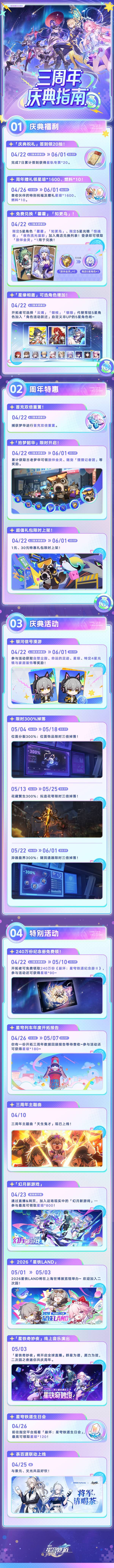 崩坏星穹铁道即将上线三周年庆活动,那么此次周年庆都有哪些活动,玩家们能获得什么福利呢?下面为大家带来崩坏星穹铁道三周年庆活动福利一览,一起来看看吧。
