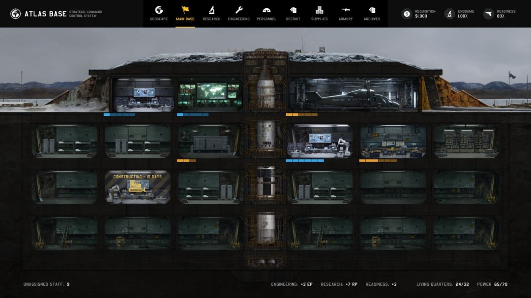 阿拉斯加的一座小雷达站在白令海峡周围检测到了异常。勘察加和育空地区的空军基地迅速派遣战斗机前去调查,追击了数个不明飞行物,并将它们击落于海上。而在数千英里之外,意大利的雷达站与阿尔及利亚基地的响应小队和法国的空军基地联手,阻止了外星人在伊比利亚半岛的数起作战行动。与此同时,一座新的基地在东南亚地区建立起来,因为外星入侵者已多次在此逃脱制裁,并且引发了恐慌。你需要建造、设计并管理数个基地,每个基地都有自己的战斗机编队、运输工具、雷达阵列、研究小组、作战人员等物资与人力。配置基地时,玩家需考虑燃料的限制,并利用网格建构系统令每一座基地的规划达到最优。根据你的需要,可以为每一座基地指定侦察、紧急响应小队、研究、制造、防御等专精方向。