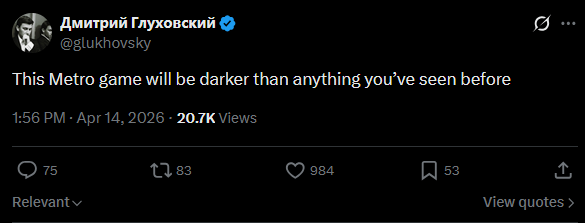 地铁系列小说作者在社交媒体上表示地铁2039的故事将比系列任何游戏都更黑暗