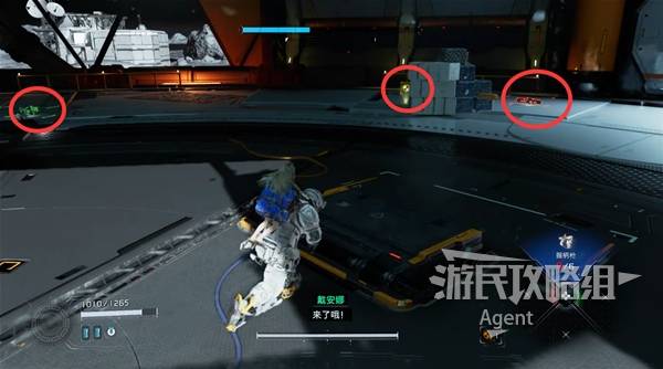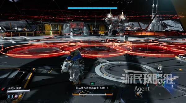 区域1-区域护卫BOSS地上显示红色提示时,BOSS即将射来飞弹,迅速闪避躲开。