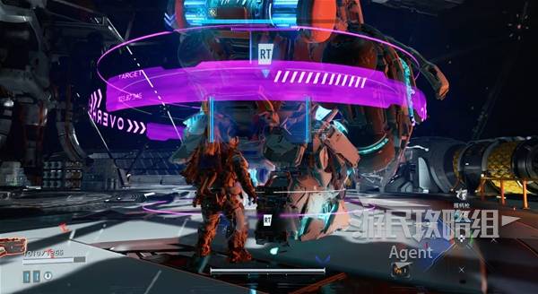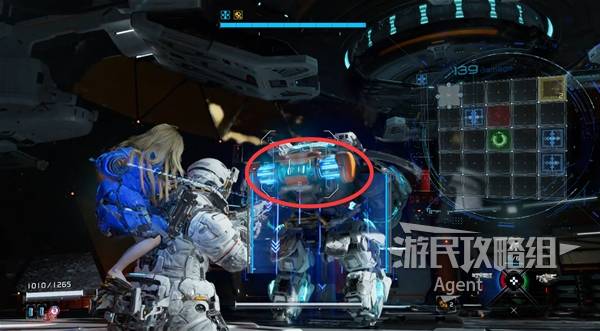 它背后的罐子是弱点,破解成功后猛攻这里。用冲击波枪最好靠近一些威力更强。
