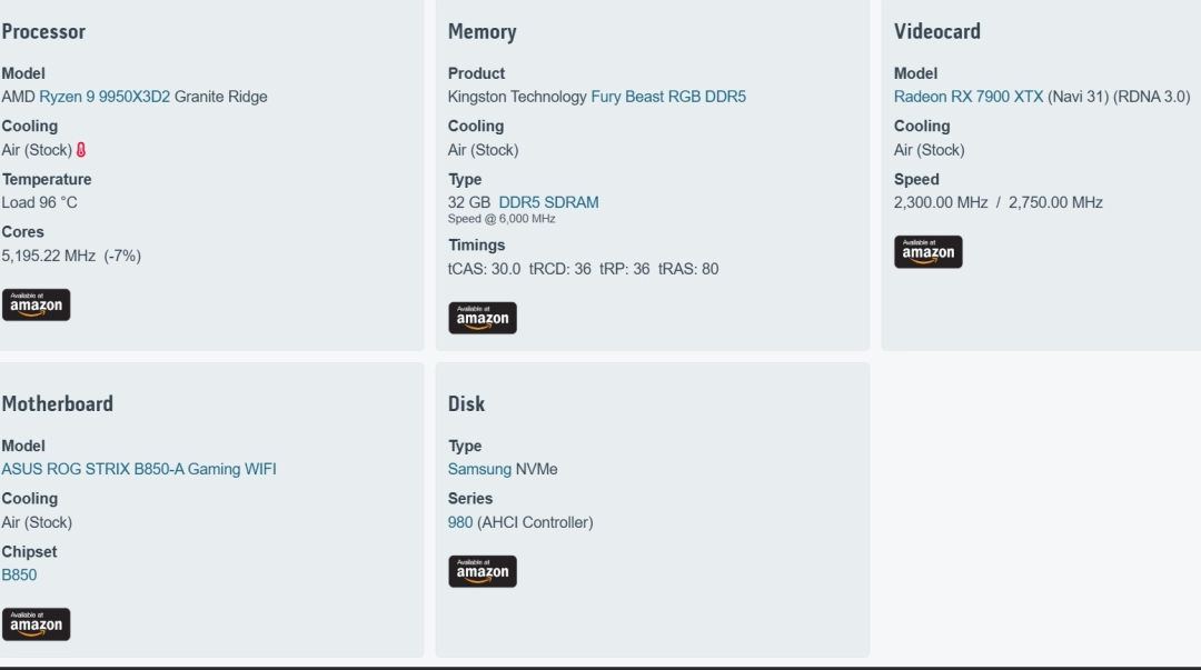 测试由用户Stoikov在HWBOT平台发布,使用风冷散热器、32GB DDR5内存、Radeon RX 7900 XTX显卡以及华硕ROG Strix B850-A Gaming WIFI主板。该芯片在多项基准测试中接受了考验,包括7‑Zip、Cinebench 2026(单核与多核)以及Cinebench R23(多核)。