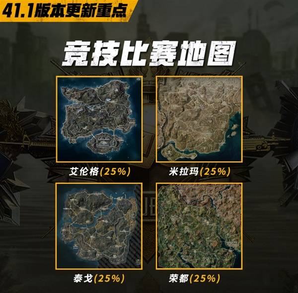 绝地求生中竞技比赛模式的地图会定期更换刷新,那么41.1版本的竞技地图有哪些呢,下面请看"官方"带来的绝地求生竞技比赛地图一览,希望能够帮助大家。