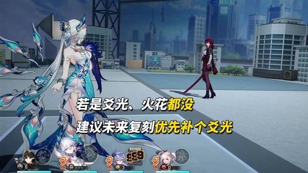 ①爻光、火花都没。可以考虑抽个00银狼激活背包技"队友被添加控制状态时全队获得1回合防火墙效果期间免疫控制状态"。现阶段先借助环境红利组建"银狼+欢愉主+花火+藿藿"过渡。