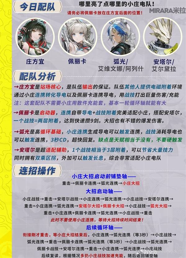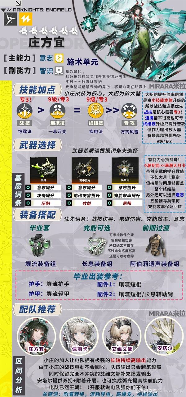 明日方舟终末地中的庄方宜是一名雷属性角色,那么庄方宜要怎么配队与输出呢?下面请看由"mirara米拉"带来的明日方舟终末地庄方宜配队与手法排轴教学,希望对大家有用。