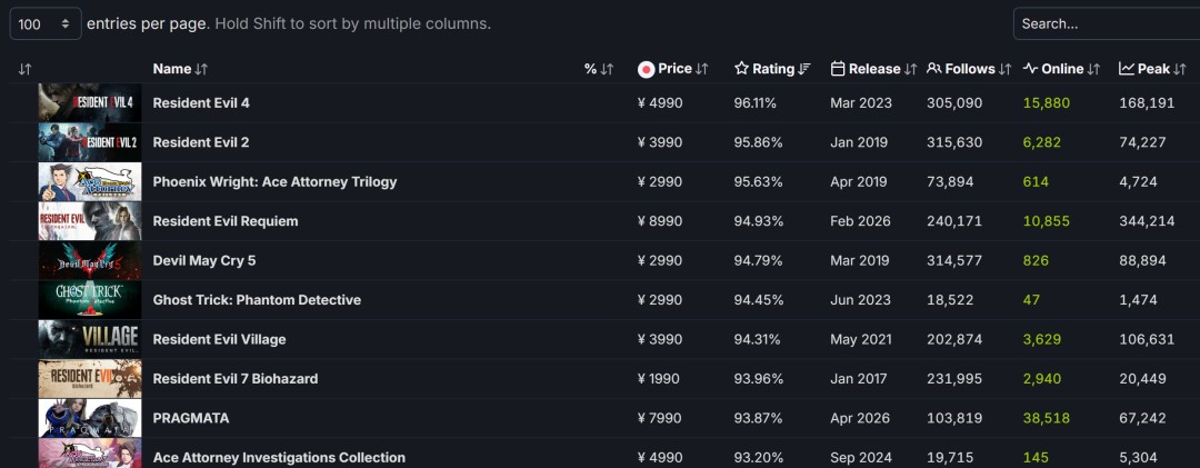 识质存在当前在SteamDB上,好评率为93.87%,仅略逊于 Capcom今年2月底推出的另一款热门游戏生化危机9:安魂曲(好评率94.93%),以及Capcom当前评分最高的游戏生化危机4:重制版(好评率为96.11%)。