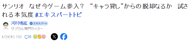 4月21日,世界最大的萌宠集团公司三丽鸥突然宣布成立游戏品牌,正式进军游戏界,引发热议,而且已经有新游在开发中,今秋登陆Switch,随后电影业巨头东映业几乎同时宣布进军游戏业,一起来了解下日本专业评论师的看法。
