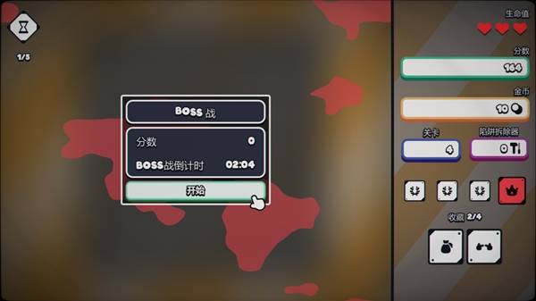 关卡:显示当前关卡,每关通关后可以进入商店页面,每4关进入BOSS战,BOSS战通关后要选择陷阱卡牌。