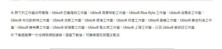 官方提示,刺客信条:黑旗 记忆重置联网下载完游戏后,可离线游玩完整主战役: