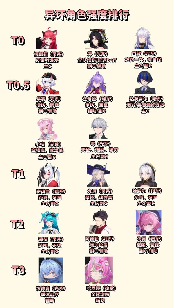 异环中拥有很多名角色,那么这些角色强度如何,自选S应该怎么选呢?下面请看由"早川秋"带来的异环角色强度榜与开荒配队推荐,一起来看看吧。
