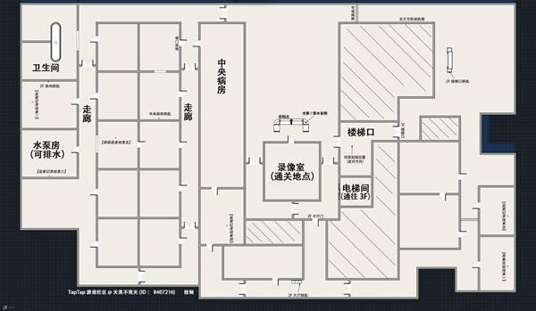 二楼分为两种情况:涨水场景与光暗场景,可在前台调查确认。两种场景流程基本相同,区别在于光影场景需要开关灯,涨水场景需要去卫生间开水龙头放水。